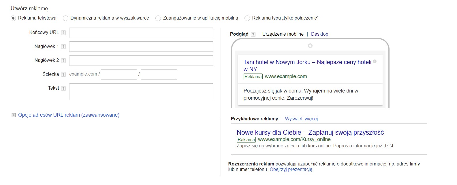 Aby reklama zawierała więcej szczegółów, warto stosować rozszerzenia reklam. Dzięki nim można przekazać informacje z numerem telefonu, adresem firmy, aktualnymi promocjami itp. Statystyki z danymi na temat skuteczności rozszerzeń, pomogą stwierdzić, jak wpływają one na efektywność przekazu.